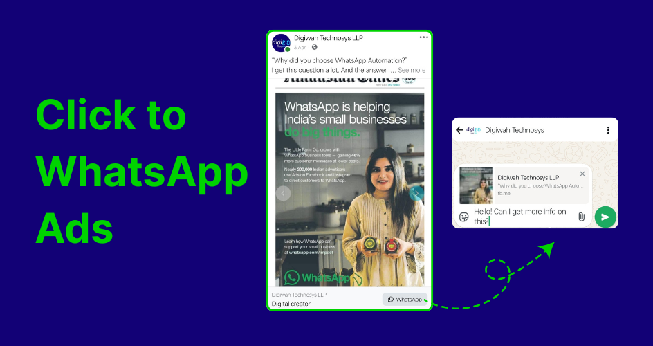 Click-to-WhatsApp Ads are Facebook and Instagram ads that, when clicked, instantly start a WhatsApp chat between the customer and your business. Instead of directing users to a landing page or form, it opens up a personal chat—instantly.
