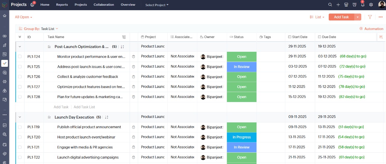 Collaborate, plan, and execute projects efficiently. Zoho Projects helps your team manage tasks, create project timelines with Gantt charts, and communicate effortlessly. We’ll set up automations to track progress and milestones, ensuring every project is delivered successfully and on time.
