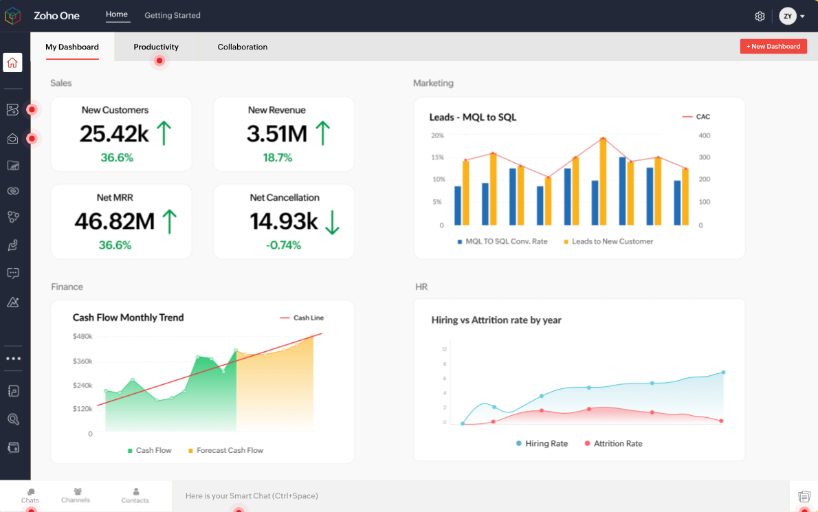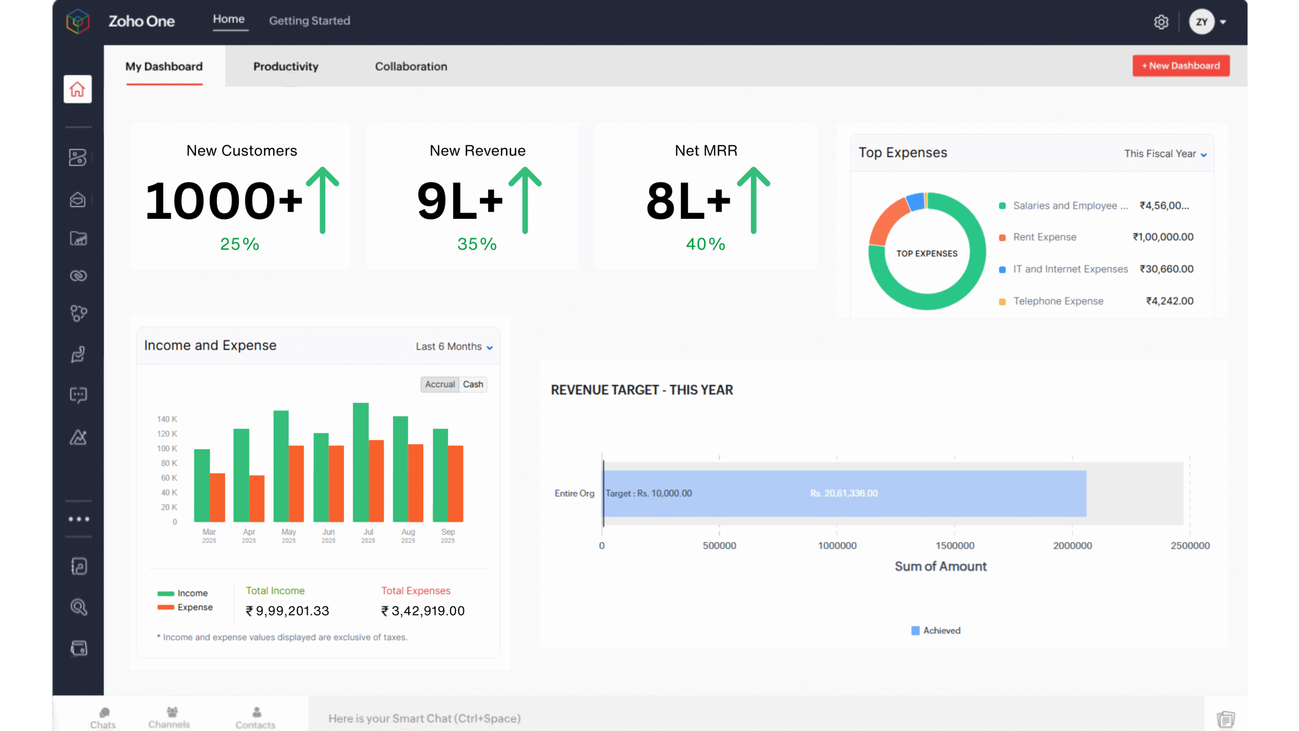 We set up your Zoho One apps (CRM, SalesIQ, Books,People, etc.) and configure them to work together seamlessly, eliminating data silos.